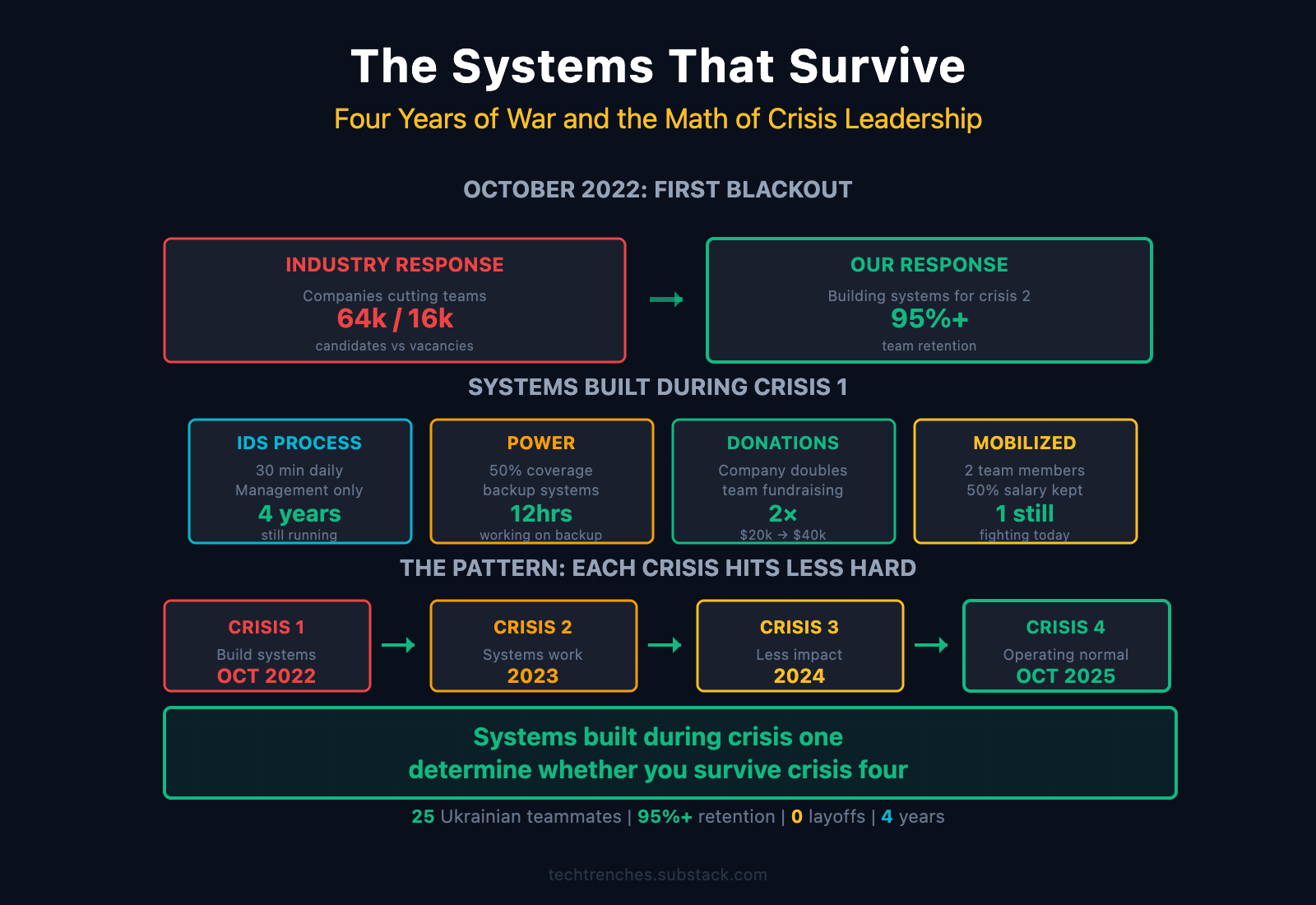 P.S. - For Ukrainian teams still operating during the war: you’re not alone. For companies working with Ukrainian teams: consistency and transparency matter more than inspiration. And for everyone else: the best time to prepare for the next crisis is during the current one.